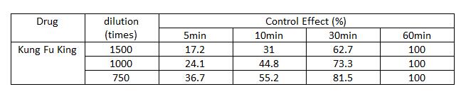 3 minutes after Kung Fu King permeated into soil, larva tossed and turned and struggled to climb up. Consciousness and motor function were gradually lost and finally died. Kung Fu King diluted 1500 times, 1000 times, and 750 times will have a 100% control effect after 60 minutes.