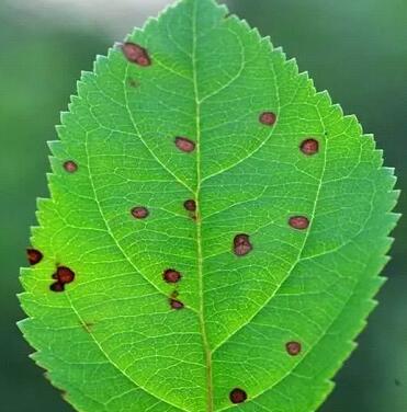 發(fā)病初期形成褐色圓形病斑,病組織不壞死,中央有褐色小點